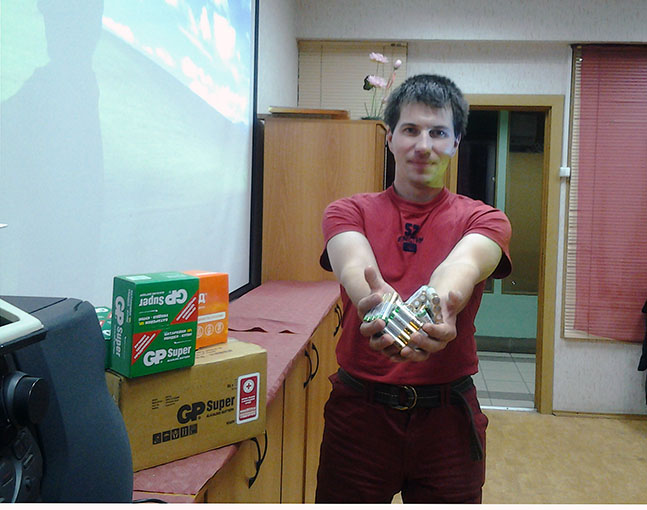 На этот раз "под раздачу" попал наш горячо любимый Дима, как представитель отряда "Экстремум". Полугодовой запас батареек АА GP Alkaline Super и стартовый комплект индивидуальных грелок Теплоид / Аист, посветит, укажет путь и если нужно согреет наших питерских друзей и потеряшек.