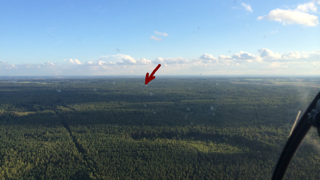 Вот такой лес. Стрелка указывает на дымок.